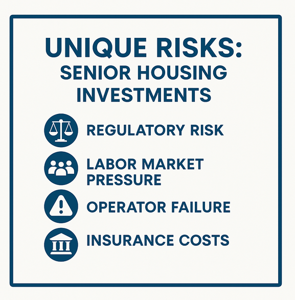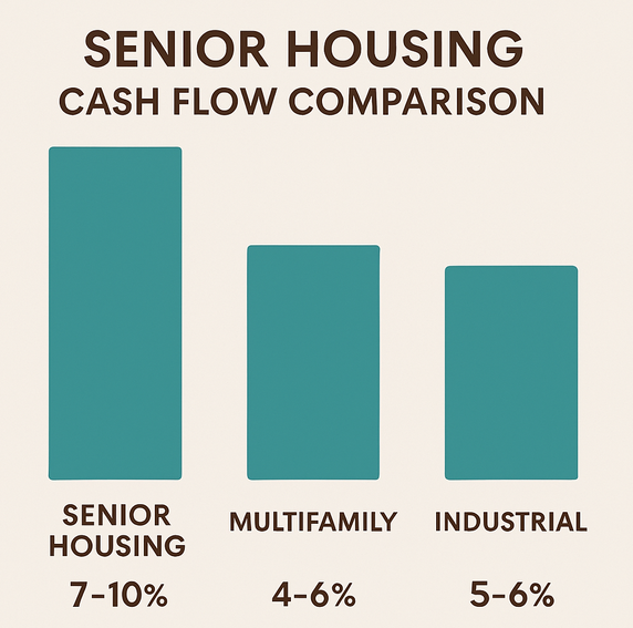 Senior housing isn’t just “rent.” Much of the income comes from care services—assisted living, memory care, medication management—which tend to be insulated from macroeconomic swings.